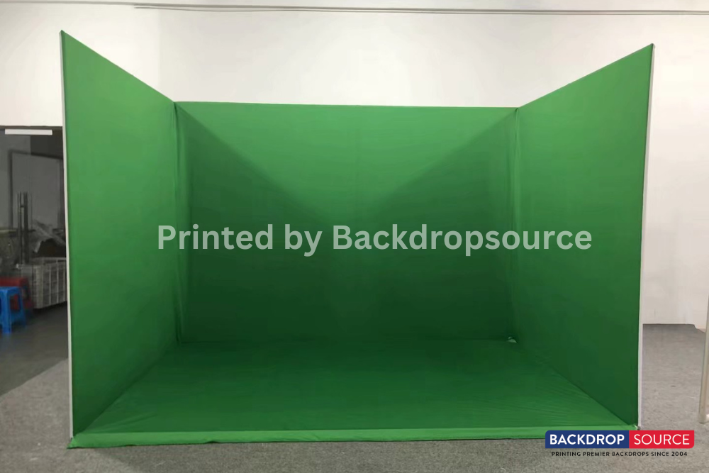 The Custom Printed U-Shaped Photo Booth (covers 3 walls/sides) is a lightweight green screen solution with a portable design. The material it is made of is durable, washable, wrinkle-resistant nylon spandex. The fabric can be stretched around the modular aluminum frame. The stand is quick and easy to set up and can be used for live events and studio projects where space is limited.